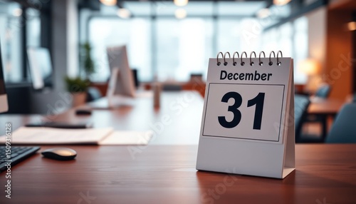 Fototapeta premium Office desk with December 31st calendar marking end of year deadline
