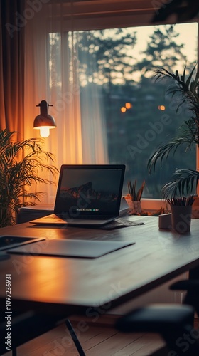 Fototapeta premium office desktop with a laptop