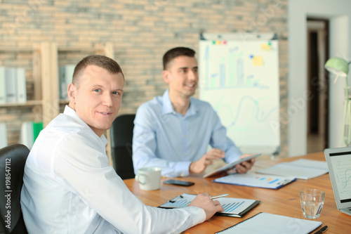 Obraz premium Office employees at business meeting. Forex concept