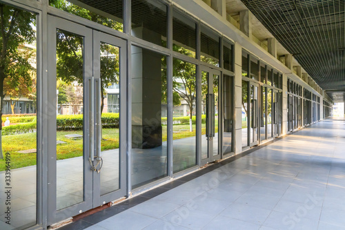 Obraz premium Office glass window and empty floor in financial district, Chongqing, China
