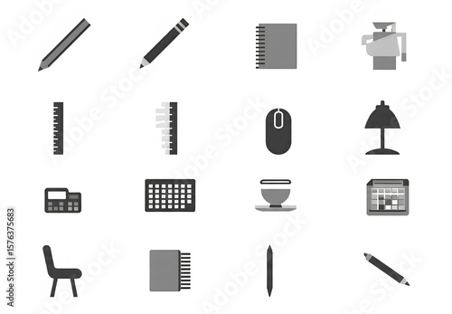 Obraz premium office icon set document, time tracking, Notepad, Mouth, ruler, lamp,...