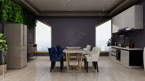 Fototapeta premium office pantry or kitchen area 3d render interior design