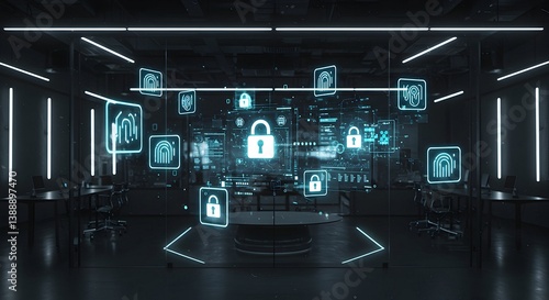 © Bujur Mujur, Fototapeta premium Office Security System with Digital Padlocks and Fingerprint Access Control