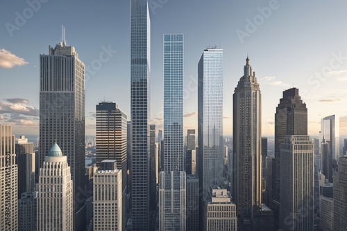 Obraz premium Office Skyscraper Sections Illustrating Urban Development and Skyline Changes