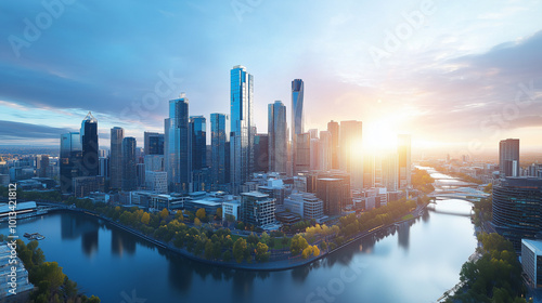© song, Fototapeta premium Office Skyscrapers in the City Financial and Business District