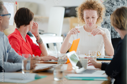 Fototapeta premium Office workers talking at desk