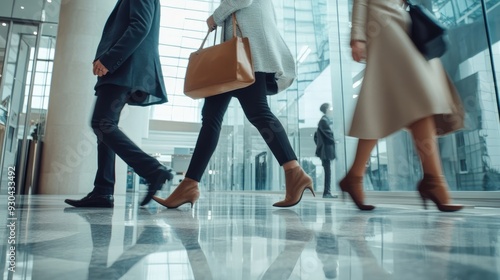 Obraz premium Office Workers Walking in Spacious Lobby Area