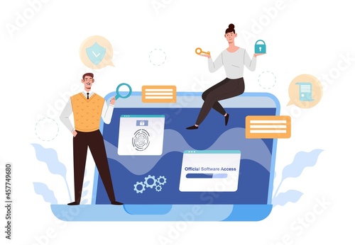 Fototapeta premium Official Software Access. Man and woman provide key to access data....