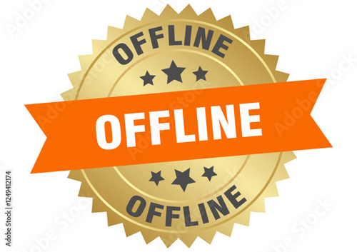 Obraz premium offline. offline round orange and gold label isolated on transparent background