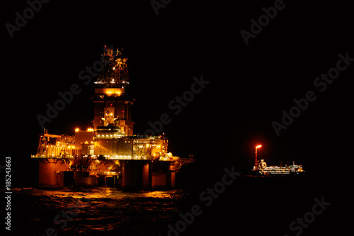 © freddytb Foto, Fototapeta premium Offshore drilling by night time