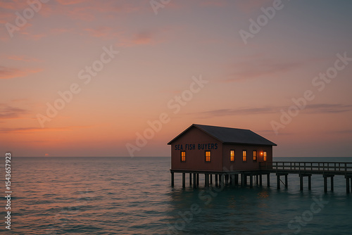 Fototapeta premium Offshore fish weighing and trading post at dawn