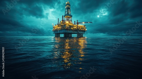 © novitasary, Obraz premium Offshore Oil Rig at Night: A Dramatic Seascape