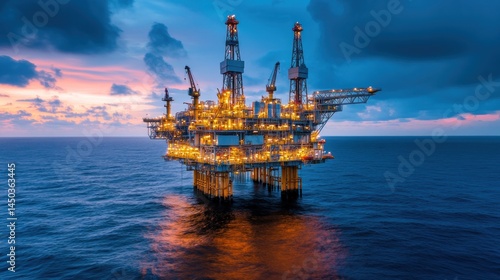 Fototapeta premium Offshore oil rig at sunset