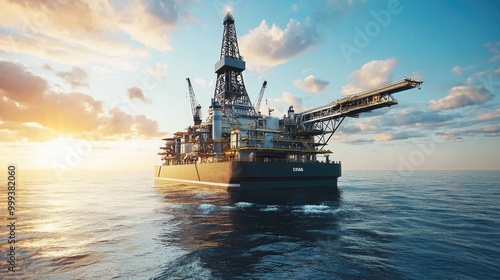 © Thanawat_Suesoypan, Obraz premium Offshore oil rig at sunset in calm waters