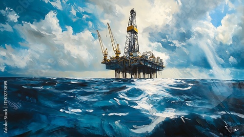 © Ariep, Obraz premium Offshore Oil Rig Under Dramatic Sky