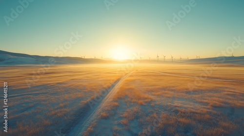 © Natasha Glu, Fototapeta premium Offshore Wind Turbines at Sunrise