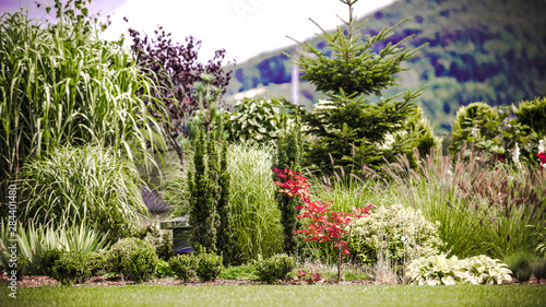 © Beenis, Obraz premium Ogród z widokiem na góry