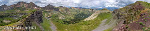 Naklejka premium Oh Be Joyful Valley - A panoramic Summer view of Oh-Be-Joyful Valley, surrounded by colorful Ruby Range and Scarp Ridge of Elk Mountains. Crested Butte, Colorado, USA.