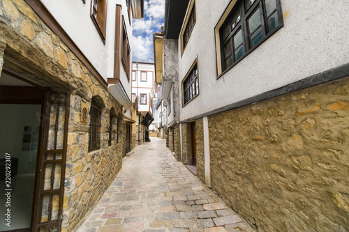 Fototapeta premium Ohrid - Macedonia. Street alley in Old town of Ohrid with traditional houses