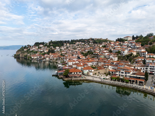 © Alp Galip, Fototapeta premium Ohrid Town and Lake aerial view in North Macedonia