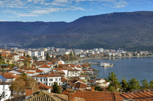 Obraz premium Ohrid with Lake Ohrid, Macedonia - Old town and harbor