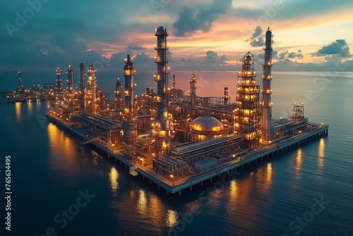 Fototapeta premium oil and gas power plant refinery with storage tanks facility for oil...