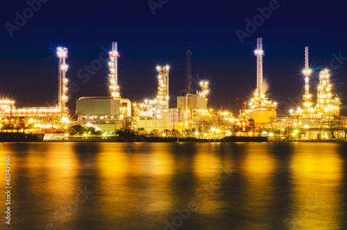 Naklejka premium Oil and gas refinery at twilight with reflection
