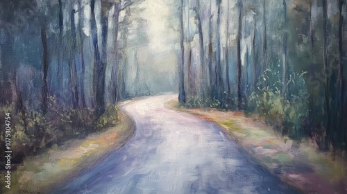 Naklejka premium Oil painting depicting a road leading to a dead end emphasizing a sense of isolation and uncertainty