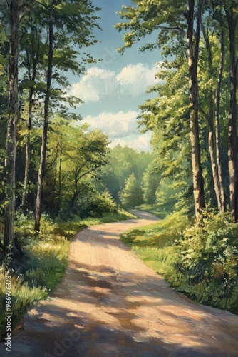 Fototapeta premium Oil painting depicting a scenic road surrounded by nature