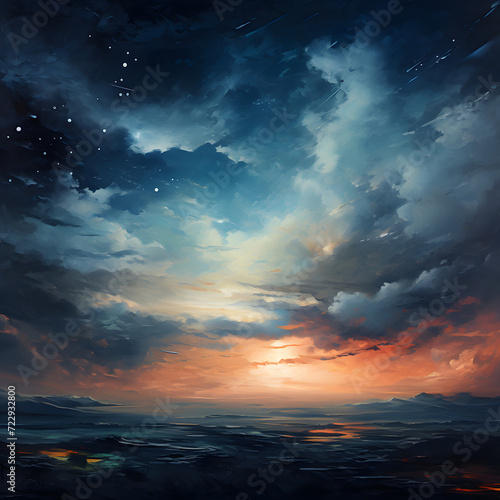© princess, Fototapeta premium Oil painting of the night sky with fluffy clouds.