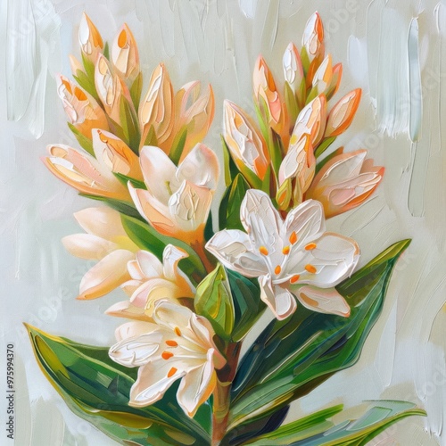 Fototapeta premium oil paintings of beautiful Tuberose with a heavenly scent