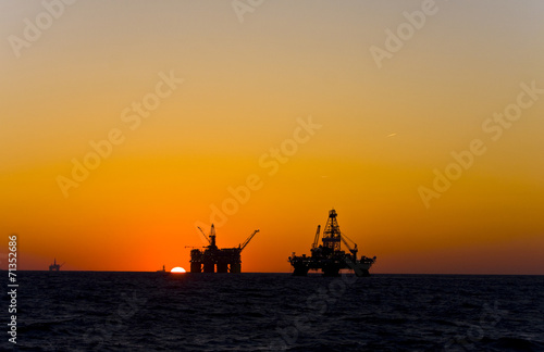 © Lukasz Z, Naklejka premium Oil platform silhouette in gulf of mexico