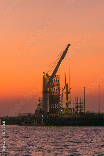 © SATHYA VASUDEVA, Obraz premium oil refinary at sunset