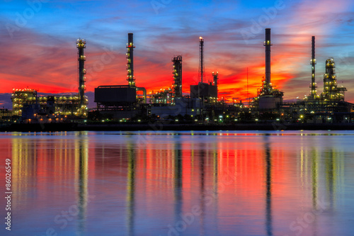 © Southtownboy Studio, Fototapeta premium Oil refinery along the river at Dusk (Bangkok, Thailand)