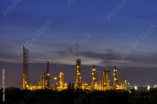 Fototapeta premium Oil refinery and Oil industry at sunset. Space for text