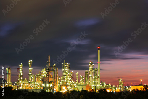Naklejka premium Oil​ refinery​ and​ plant and tower column of Petrochemistry industry in...