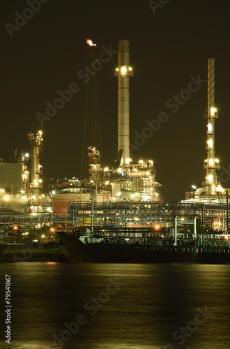 Naklejka premium Oil refinery at night.