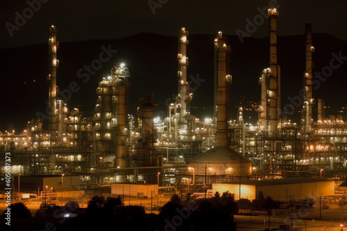 Fototapeta premium Oil refinery at night, AI Generated, environmental protection
