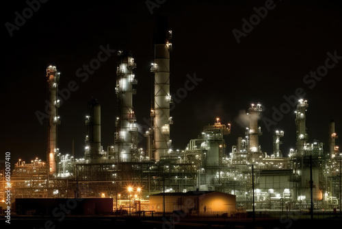 Fototapeta premium Oil refinery at night, AI Generated, environmental protection