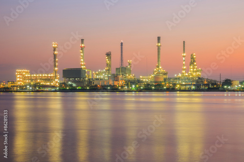 Fototapeta premium Oil refinery factory in silhouette and sunrise sky