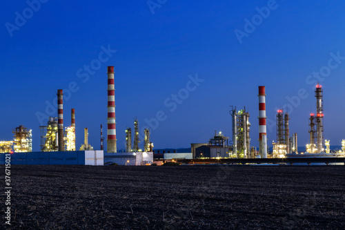 Obraz premium Oil refinery in Burgas, Bulgaria at night