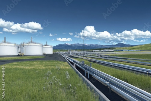 © Yus, Obraz premium Oil Refinery Landscape View