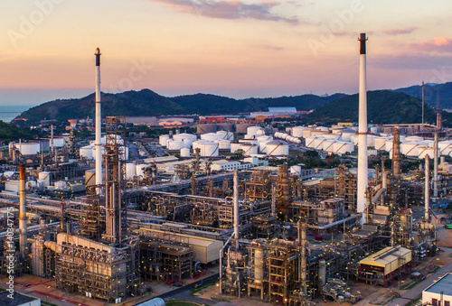 © MAGNIFIER, Obraz premium Oil refinery with a background of the city.The factory is located in the middle of nature