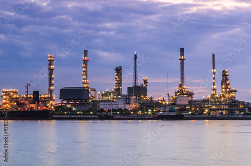 Fototapeta premium Oil refinery with sunset sky