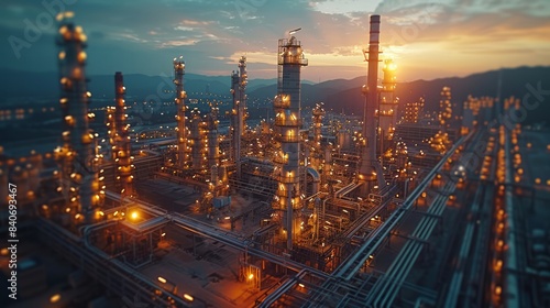Fototapeta premium Oil refinery with towering structures and complex pipelines, showcasing the...