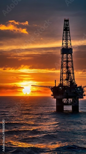© YUNADE, Obraz premium Oil Rig at Sunset