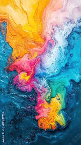 © Евгения Рубцова, Obraz premium Oil spill creates vibrant rainbow sheen on ocean surface under bright natural light