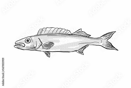 © Redwater Vectors, Fototapeta premium Oilfish Ruvettus pretiosus Hawaii Fish Cartoon Drawing Halftone Black and White