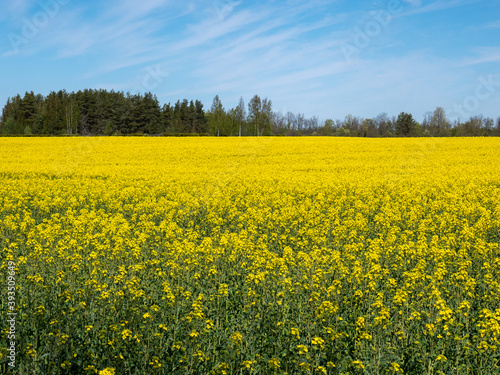 © photoexpert, Fototapeta premium Oilseed rape field with forest on background