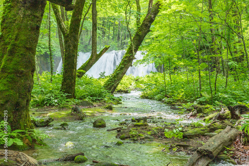 © HIROSHI FUJITA, Fototapeta premium Oirase mountain stream in early summer